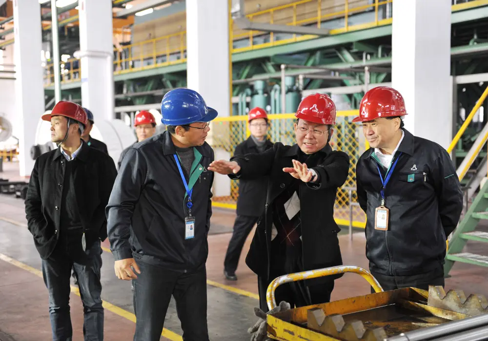 随后,虞董事长陪同赵行长一行参观了公司生产车间,在调研过程中,虞董事长向赵行长一行介绍了公司近几年来的变化、精密冷轧不锈钢市场前景、创新成果以及未来的战略发展方向。赵行长对甬金科技近年来取得的发展给予高度肯定,并表示建设银行要大力度的支持像甬金科技这样坚持以科技创新作为核心竞争力的高新企业,与甬金科技共成长,帮助甬金科技实现再一次的腾飞。